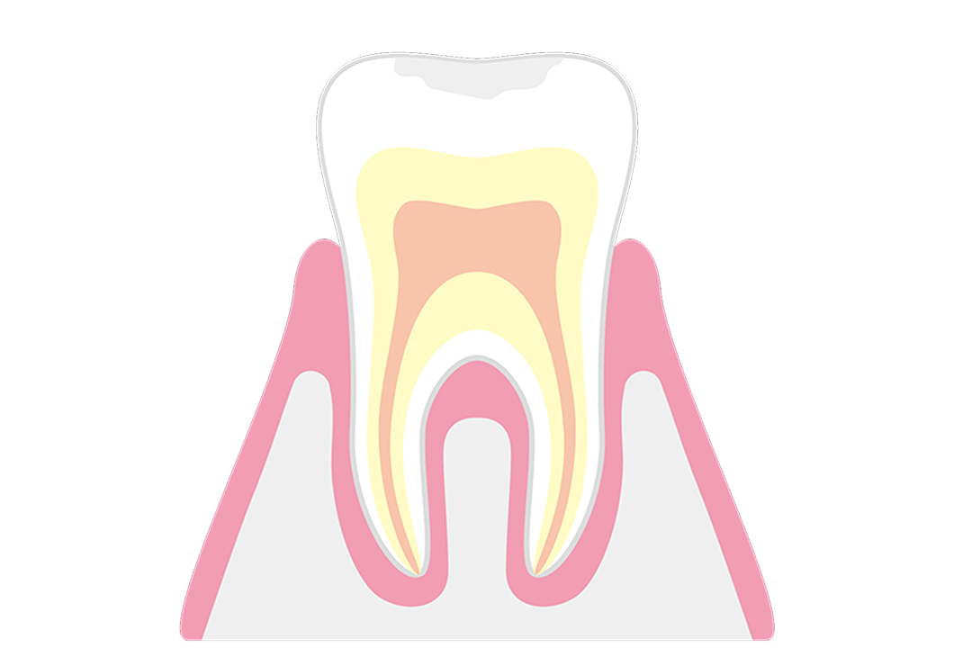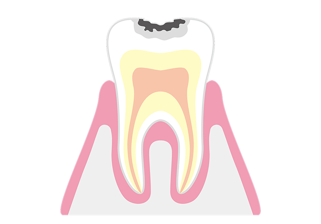 むし歯の感染がエナメル質を越えて象牙質まで進行した状態です。