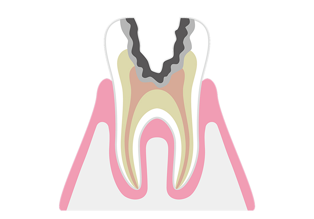 象牙質が破壊され、むし歯が神経にまで進行した状態です。