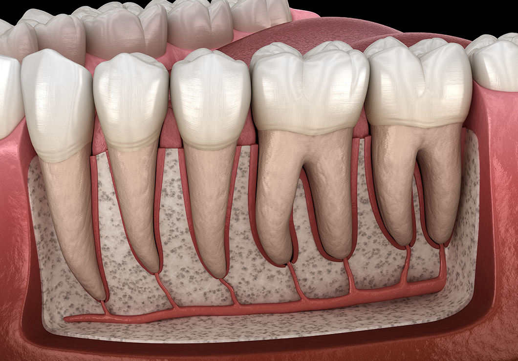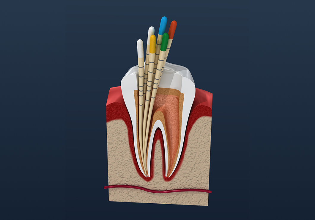 歯の根っこの部分には、神経や血管が通る「根管」と呼ばれる細い管があります。血管は歯に栄養や酸素を届け、神経は刺激を感じ取る役割があります。また、根管は曲がっていたり、枝分かれしていたりと、非常に複雑な構造をしています。